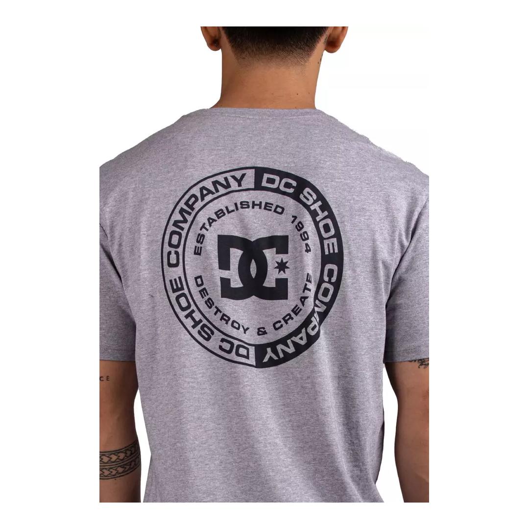 DC Essentials FB SS Tee features soft plastisol ink print on left chest and back, garment washed with softener, with a regular short sleeve fit.